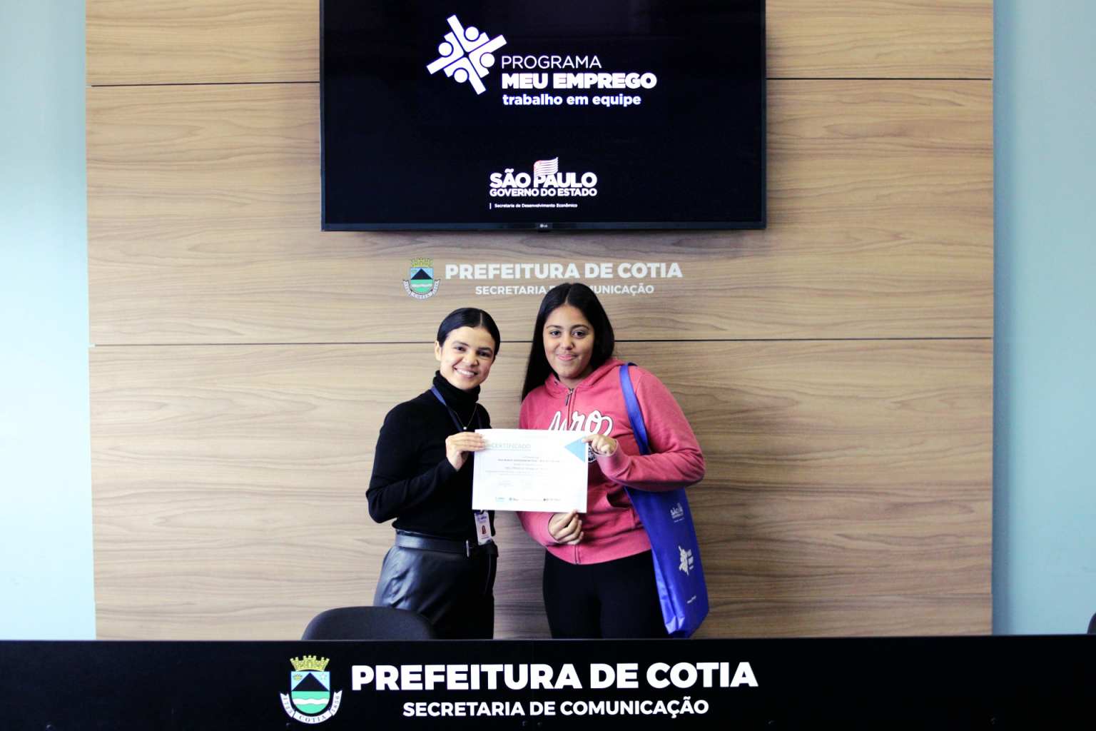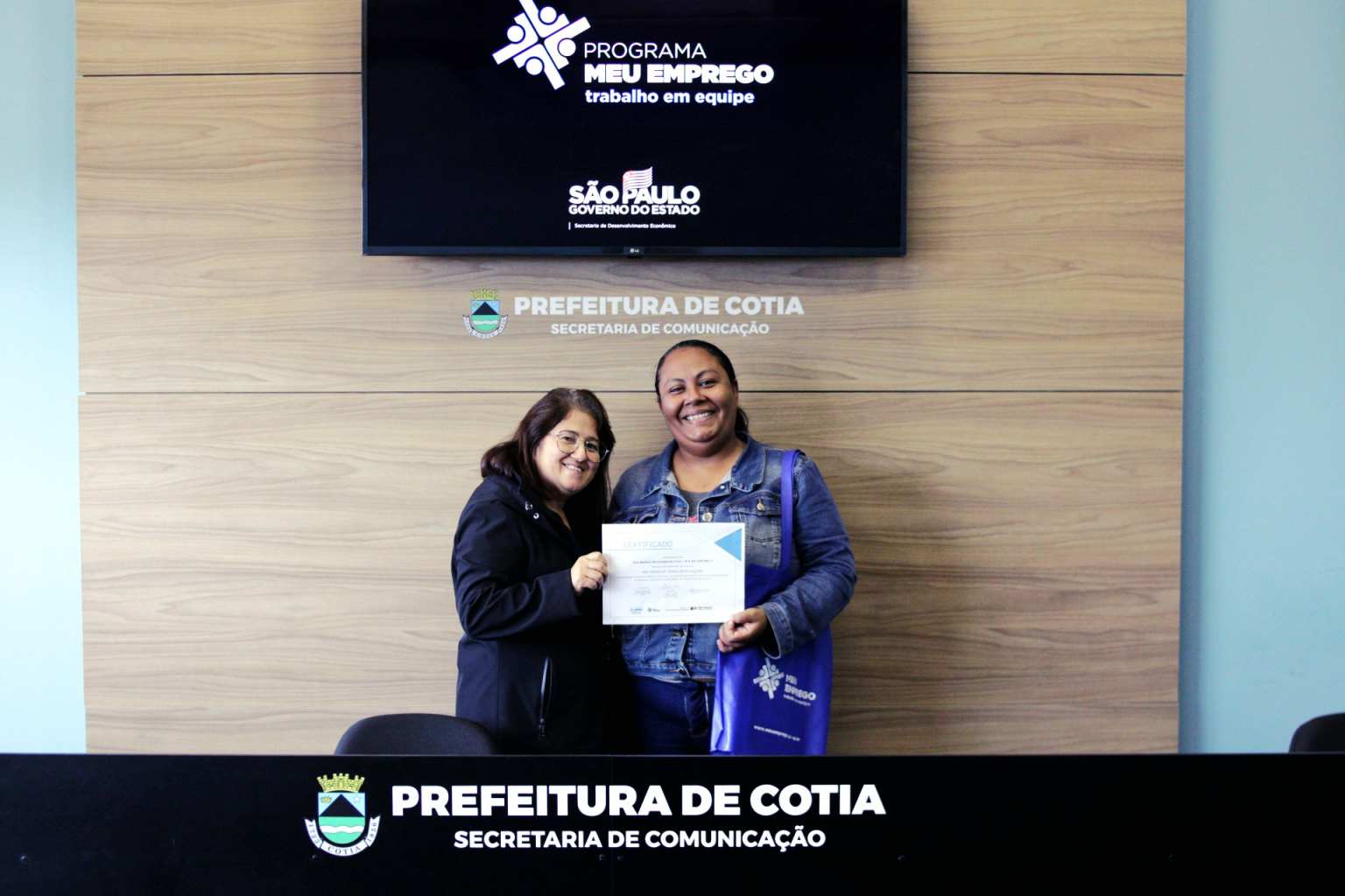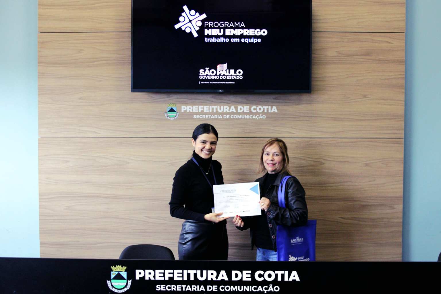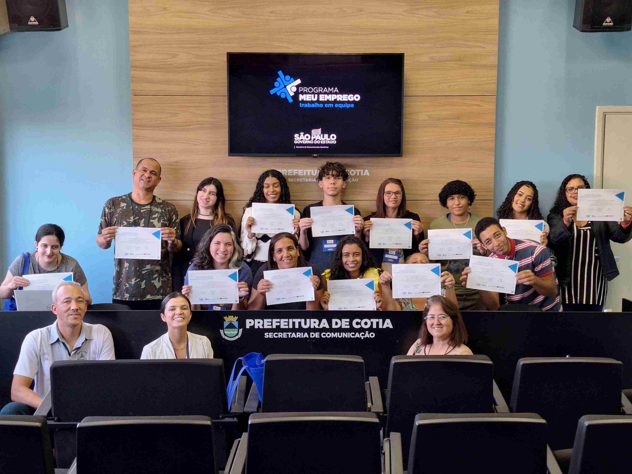 Nesta semana, a Prefeitura de Cotia, por meio de uma parceria com o governo estadual, entregou o certificado de conclusão do curso ‘Meu Emprego – Trabalho em Equipe’, que foi ministrado pela Secretaria de Trabalho e Renda de Cotia, para duas turmas que concluíram a capacitação. Os alunos receberam orientações e técnicas necessárias para aumentarem as chances de aprovação em seleção de emprego e até de empreendedorismo.