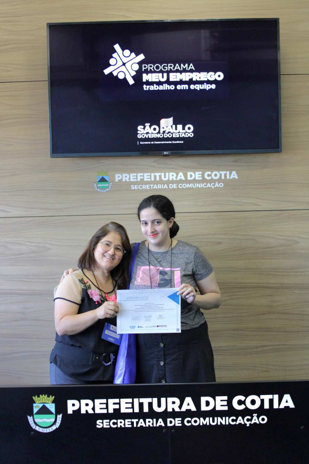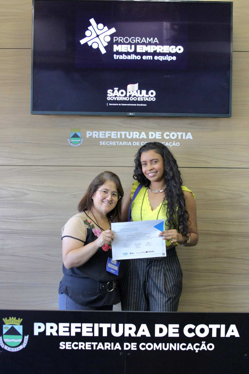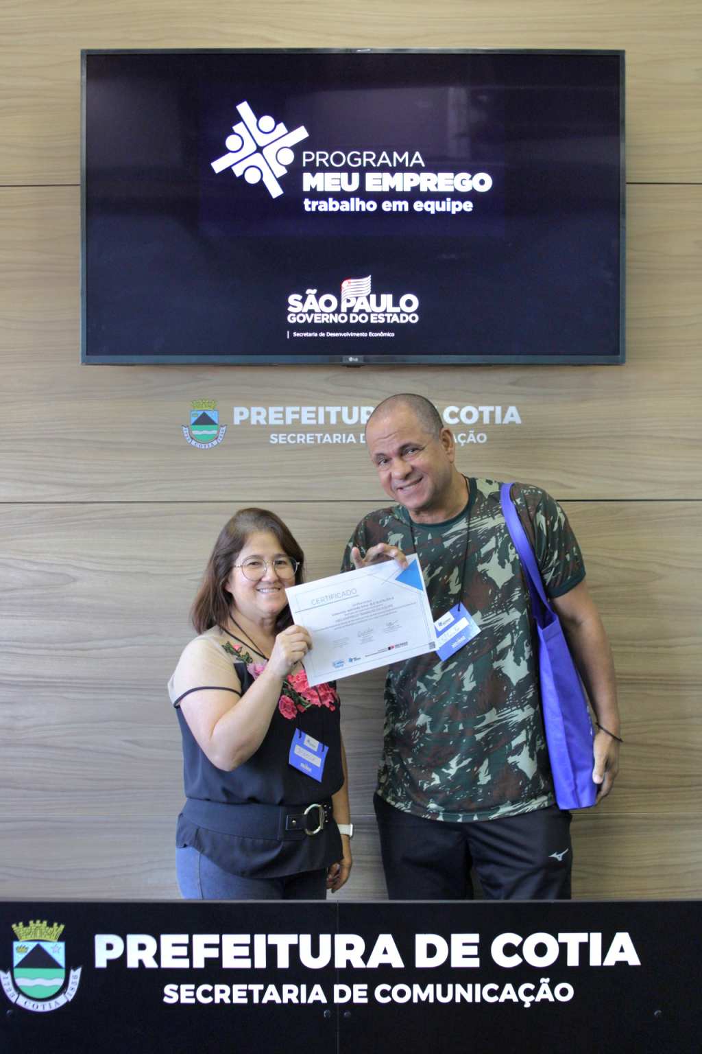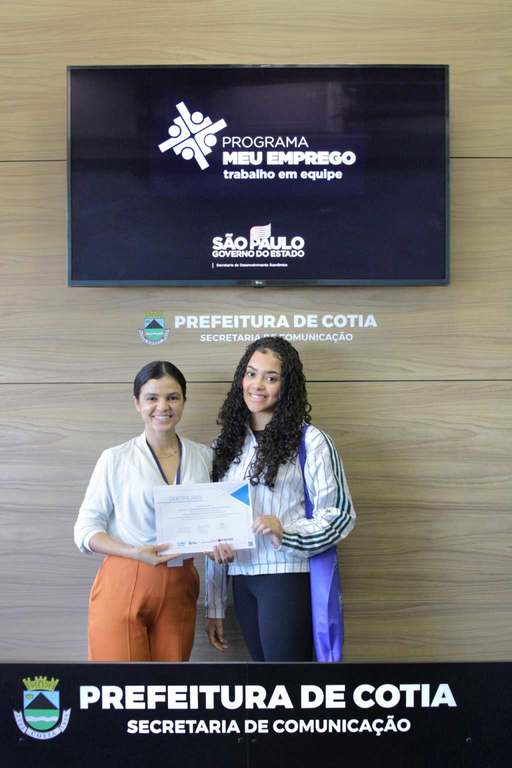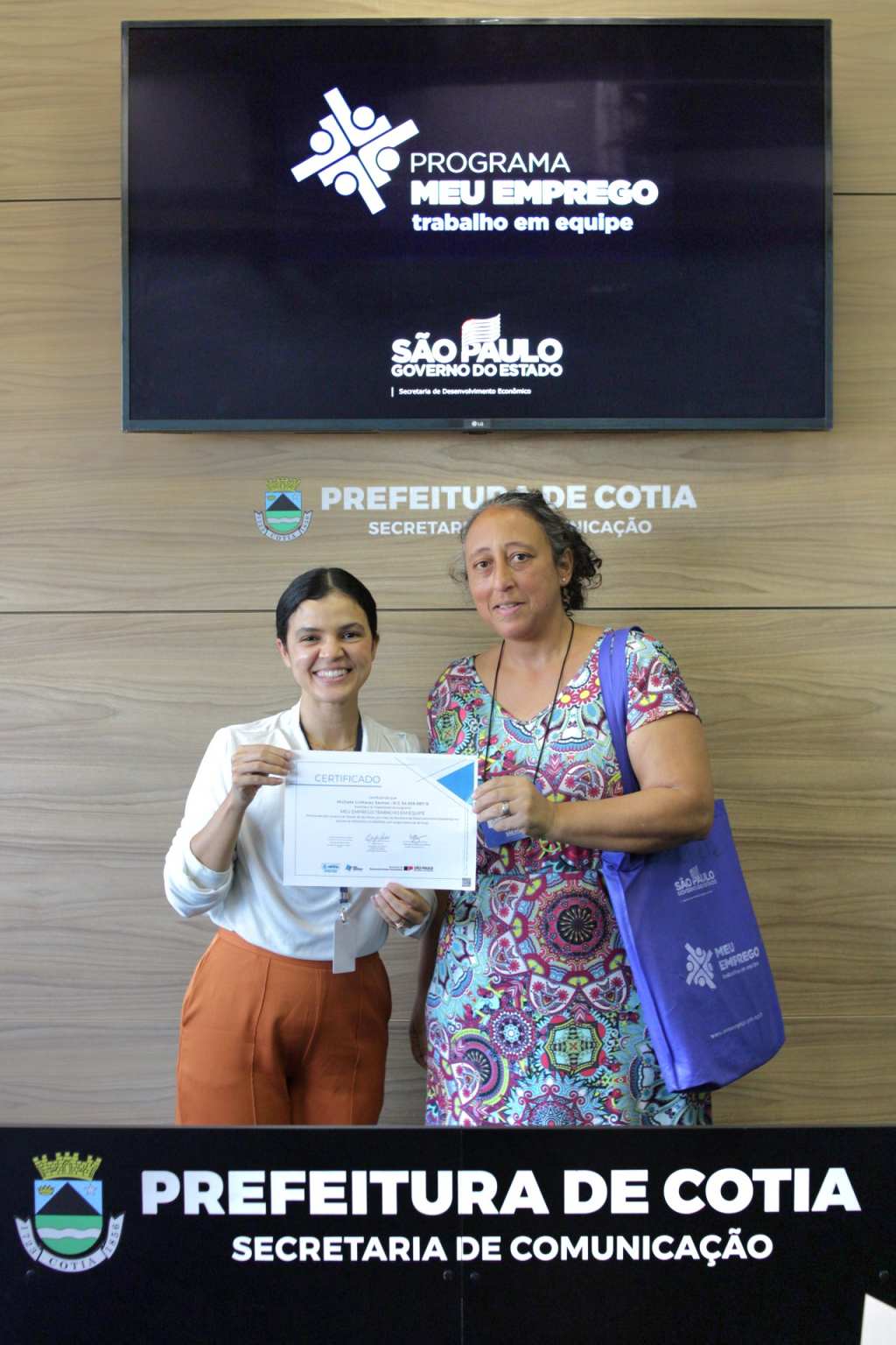 Nesta semana, a Prefeitura de Cotia, por meio de uma parceria com o governo estadual, entregou o certificado de conclusão do curso ‘Meu Emprego – Trabalho em Equipe’, que foi ministrado pela Secretaria de Trabalho e Renda de Cotia, para duas turmas que concluíram a capacitação. Os alunos receberam orientações e técnicas necessárias para aumentarem as chances de aprovação em seleção de emprego e até de empreendedorismo.