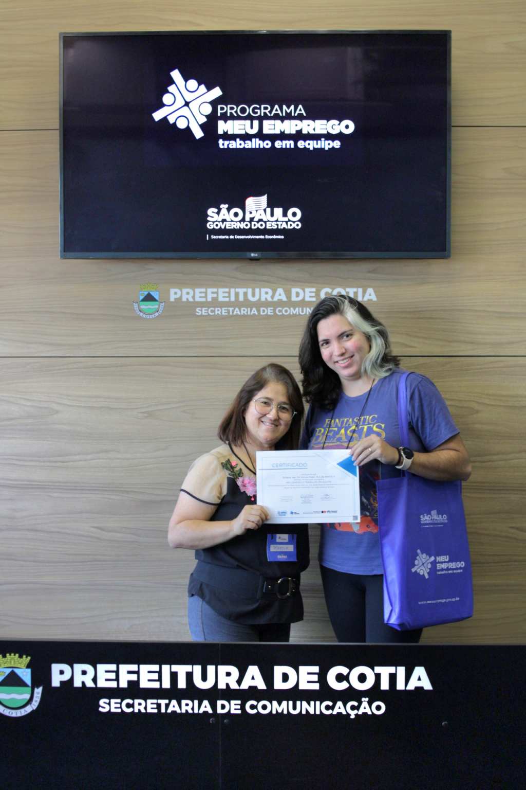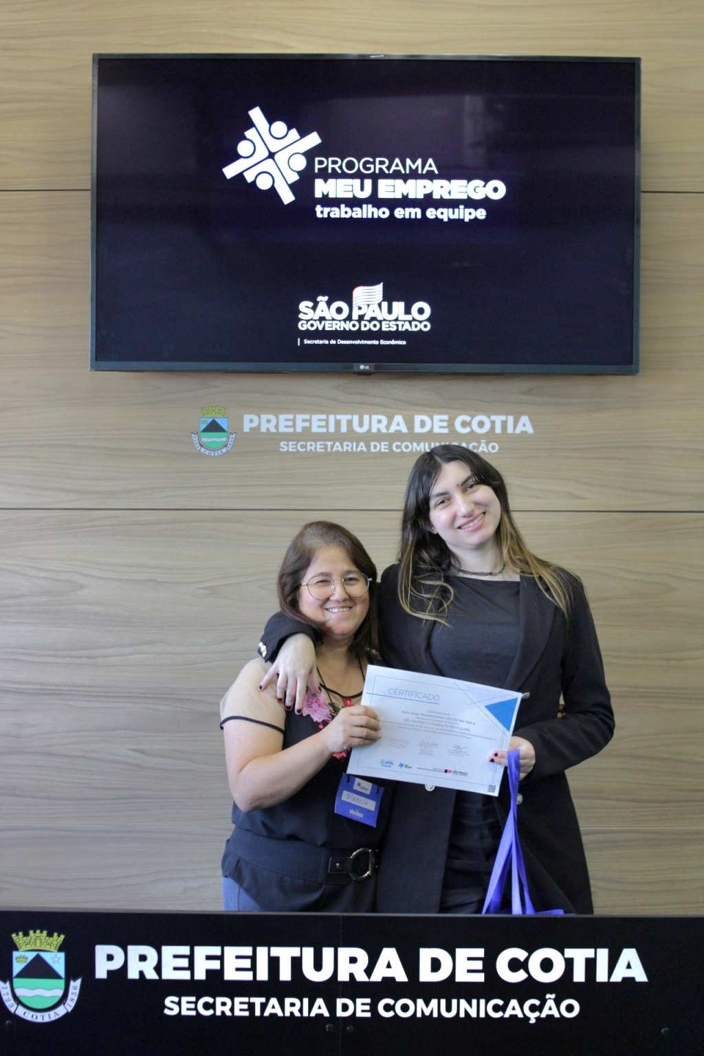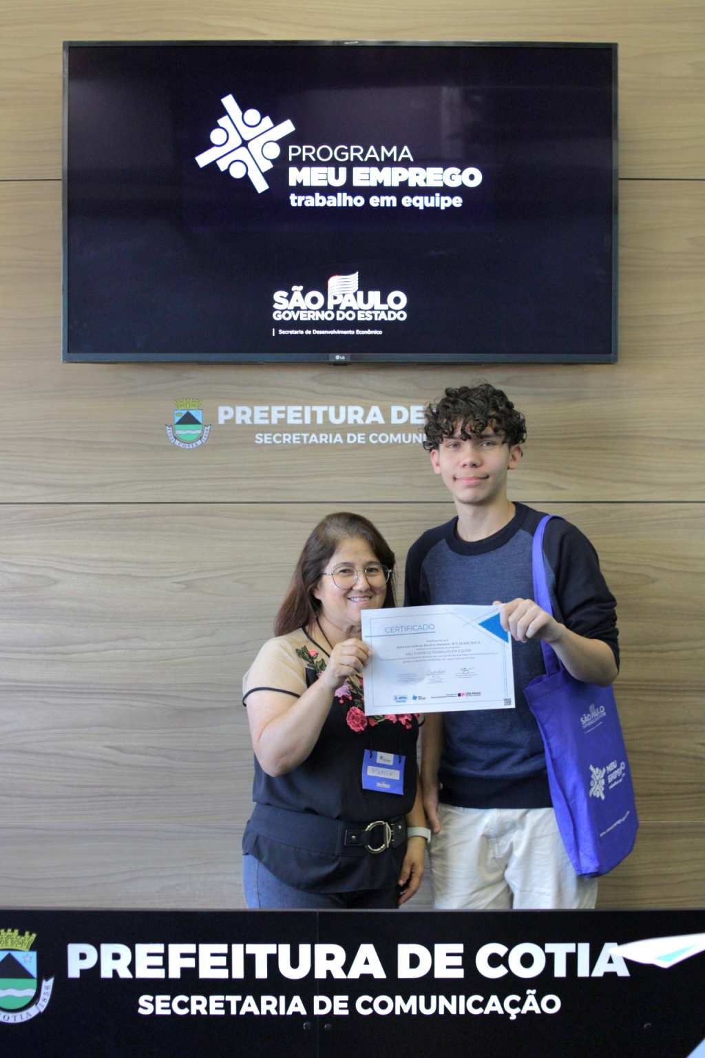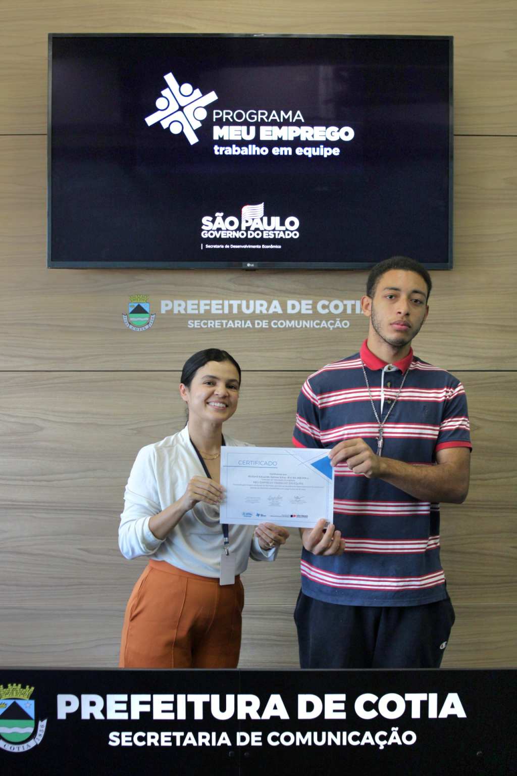 Nesta semana, a Prefeitura de Cotia, por meio de uma parceria com o governo estadual, entregou o certificado de conclusão do curso ‘Meu Emprego – Trabalho em Equipe’, que foi ministrado pela Secretaria de Trabalho e Renda de Cotia, para duas turmas que concluíram a capacitação. Os alunos receberam orientações e técnicas necessárias para aumentarem as chances de aprovação em seleção de emprego e até de empreendedorismo.