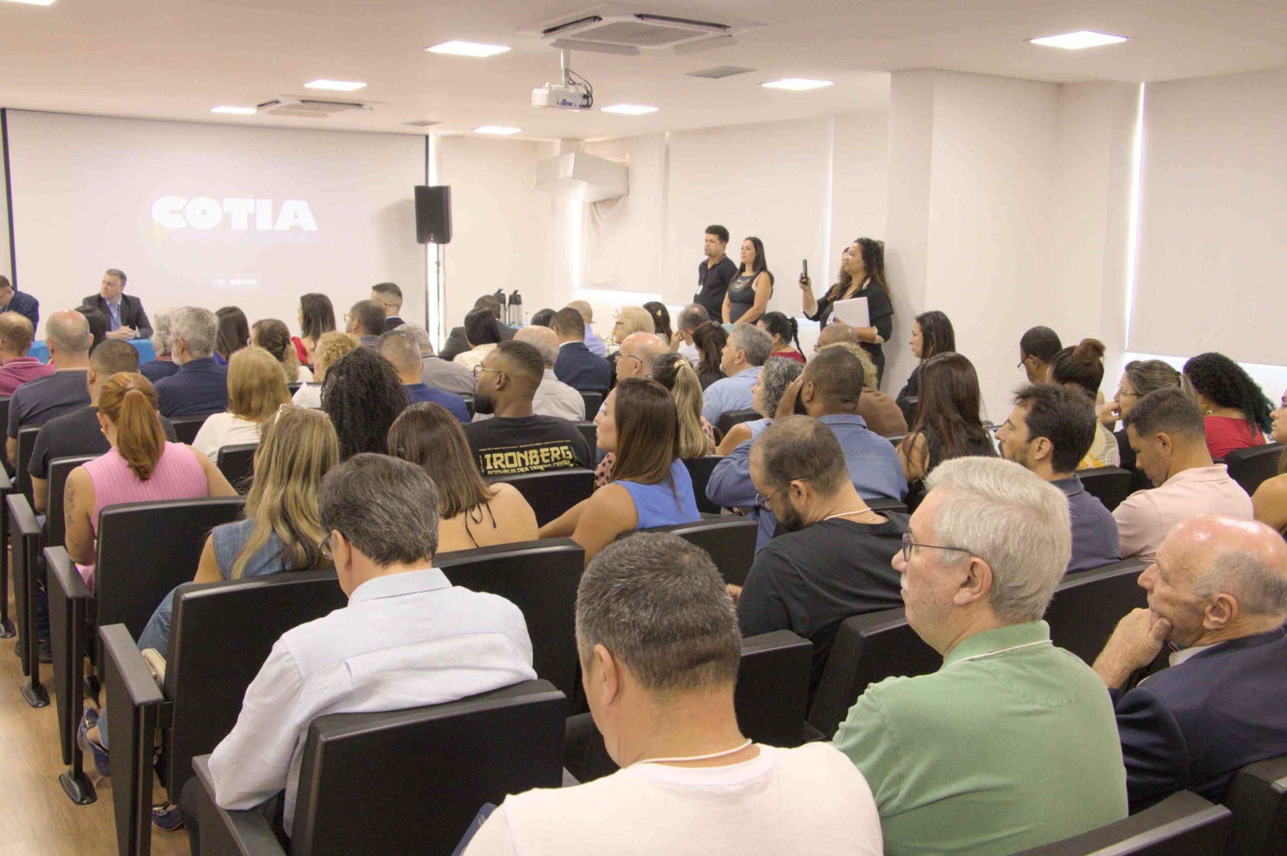 Durante a manhã dessa quinta-feira (20/02/25), dezenas de empreendedores lotaram o auditório da Secretaria de Educação de Cotia para participarem da 1ª Conferência do Empreendedor. Na ocasião, a Prefeitura anunciou o lançamento do programa ‘Cotia Mais Empreendedora’ que buscará aproximar o poder público dos empresários e empreendedores da cidade, além de oportunizar eventos de mentoria com especialistas, ao longo do ano, para fomentar a cadeia produtiva da cidade. Também teve apresentação do Plano de Ação da Secretaria de Trabalho e Renda.