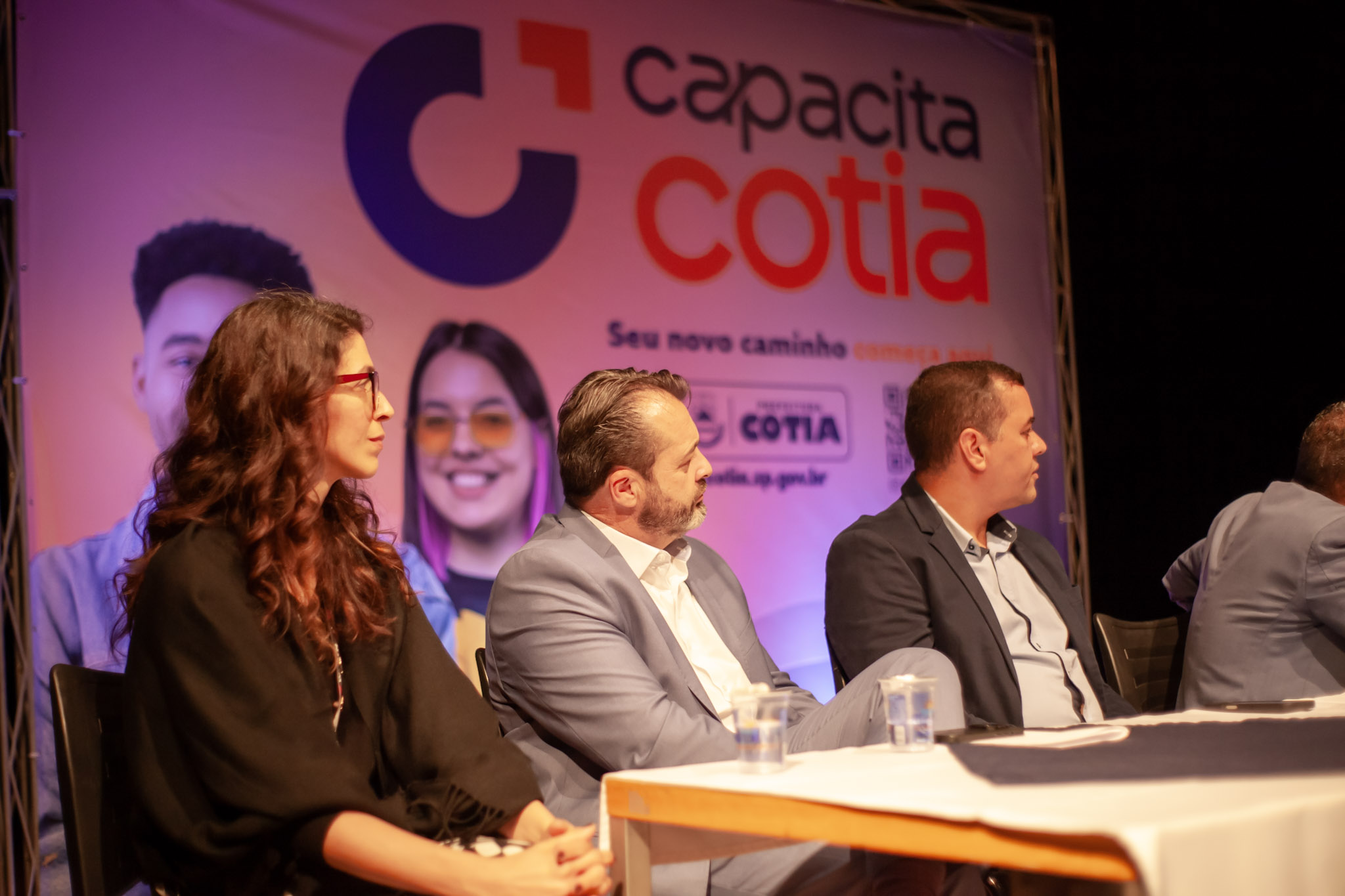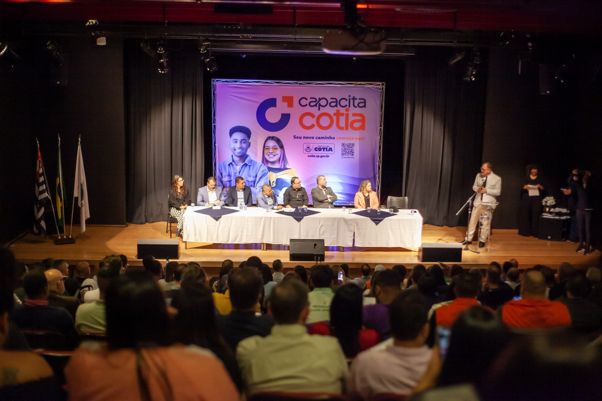 A Prefeitura de Cotia lançou oficialmente o Programa Municipal Capacita Cotia em um evento que contou com representantes de empresas e de instituições de ensino, no Teatro Wurth, na manhã desta quinta-feira (23/10). A iniciativa busca construir e fortalecer as relações entre as empresas instaladas na cidade e a mão de obra local. O programa apresentado pela Prefeitura tem o propósito de angariar apoio e a parceria de empresas para a formação profissional de forma gratuita para moradores da cidade.